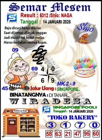 Selamat Datang di SINGAPORE Gembiratoto, disini syair paling lengkap dan juga syair yang paling cepat di naikan , dan juga ada prediksi togel yang lain untuk semua pasaran togel tiap hari nya kita upload serta ada paito warna juga, dan semua nya hanya berdasarkan prediksi serta syair tidak ada yang pasti dalam bermain togel semoga angka angka prediksi yang kita keluar kan bisa keluar untuk resultnya Syair.