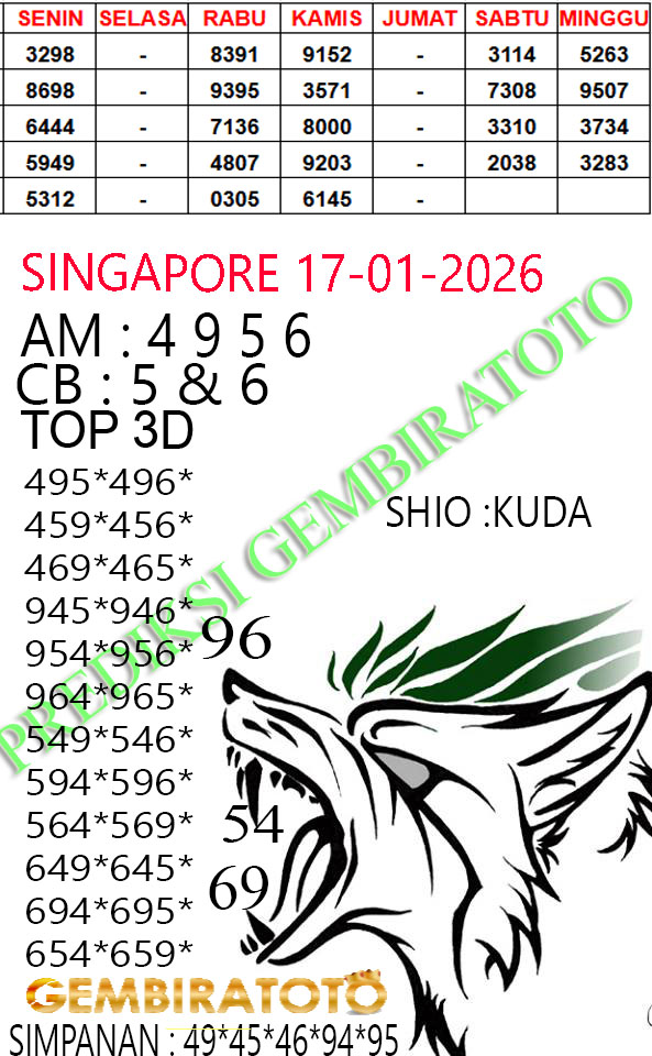 Selamat Datang di SINGAPORE Gembiratoto, disini syair paling lengkap dan juga syair yang paling cepat di naikan , dan juga ada prediksi togel yang lain untuk semua pasaran togel tiap hari nya kita upload serta ada paito warna juga, dan semua nya hanya berdasarkan prediksi serta syair tidak ada yang pasti dalam bermain togel semoga angka angka prediksi yang kita keluar kan bisa keluar untuk resultnya Syair.