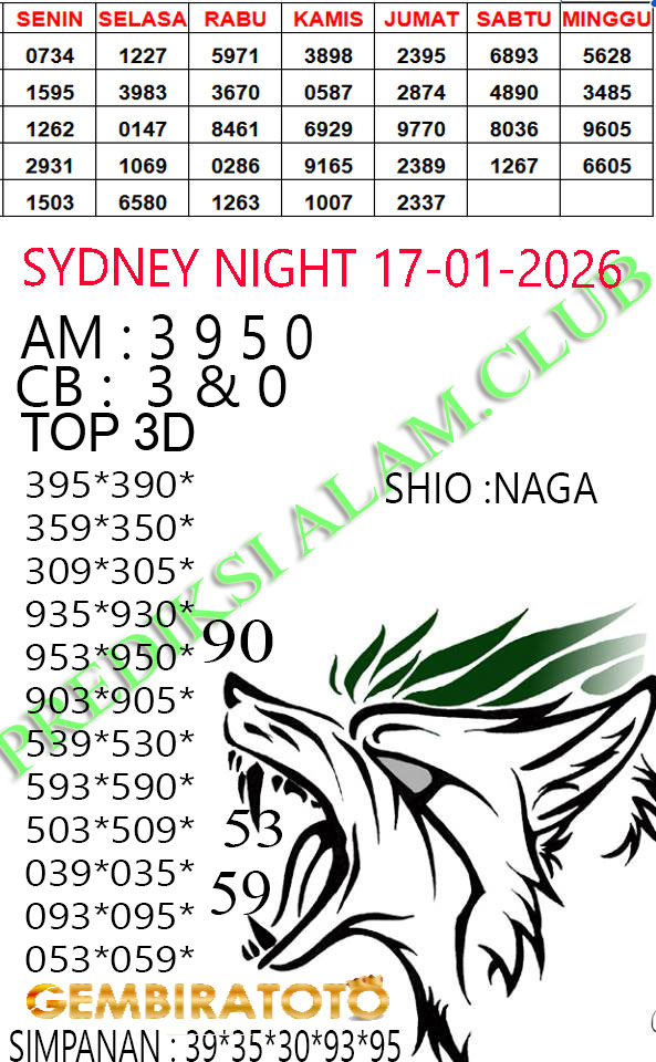 Syair SydneyNight Sabtu 17 Januari 2026